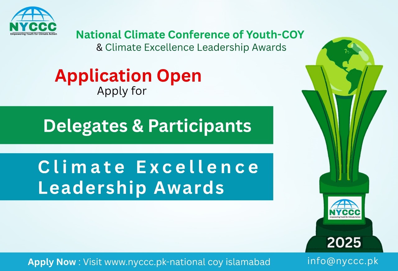 The application form for delegates is now officially open for the upcoming National Climate Conference of Youth (COY) and NYCCC Climate Excellence Leadership Awards. This landmark event stands as one of the highest-level youth-led climate conferences in Pakistan, offering a dynamic platform for dialogue, innovation, and action on climate change.